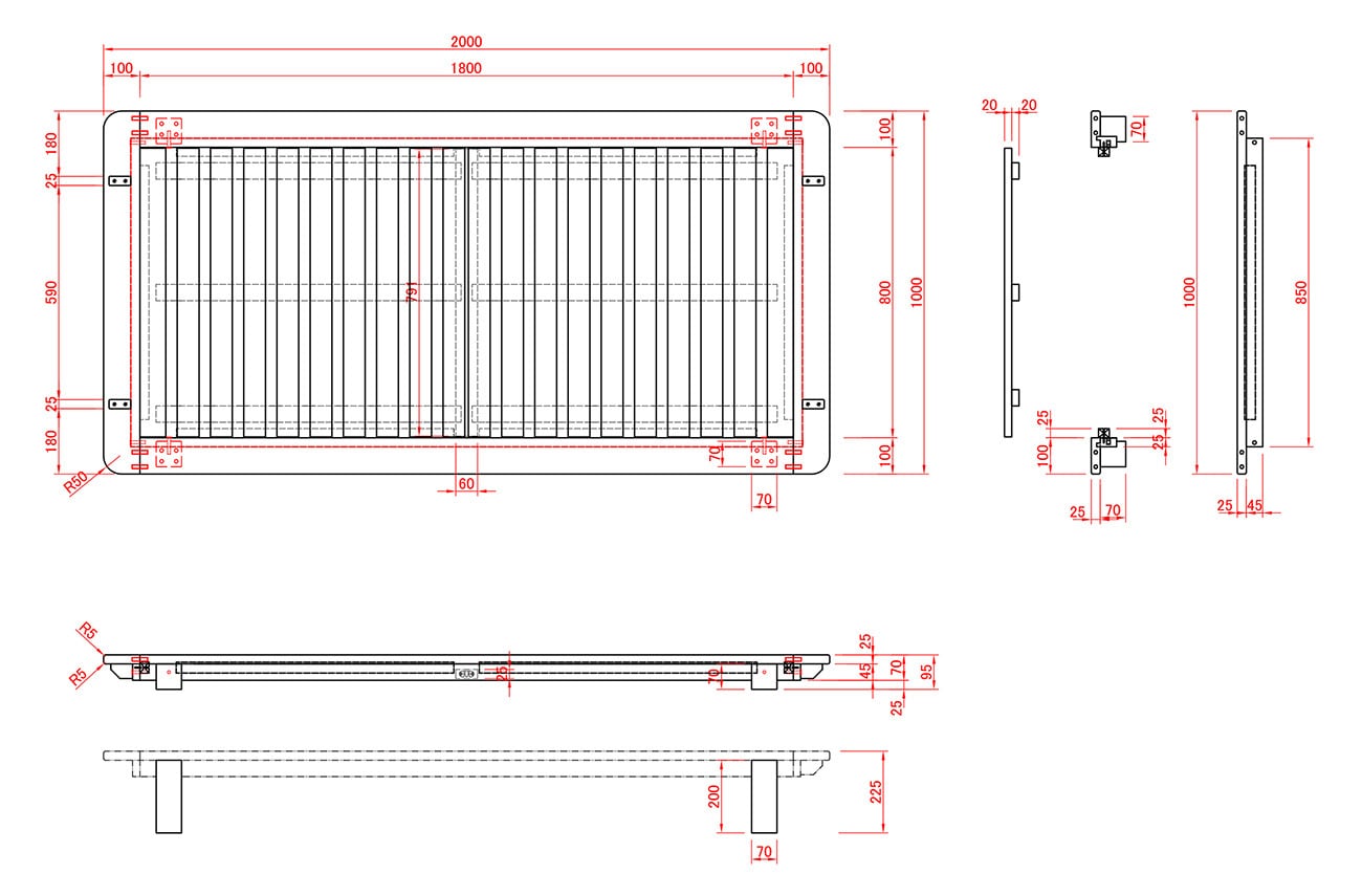 高さ:ロータイプ-床から9.5cm/ハイタイプ-床から22.5cm