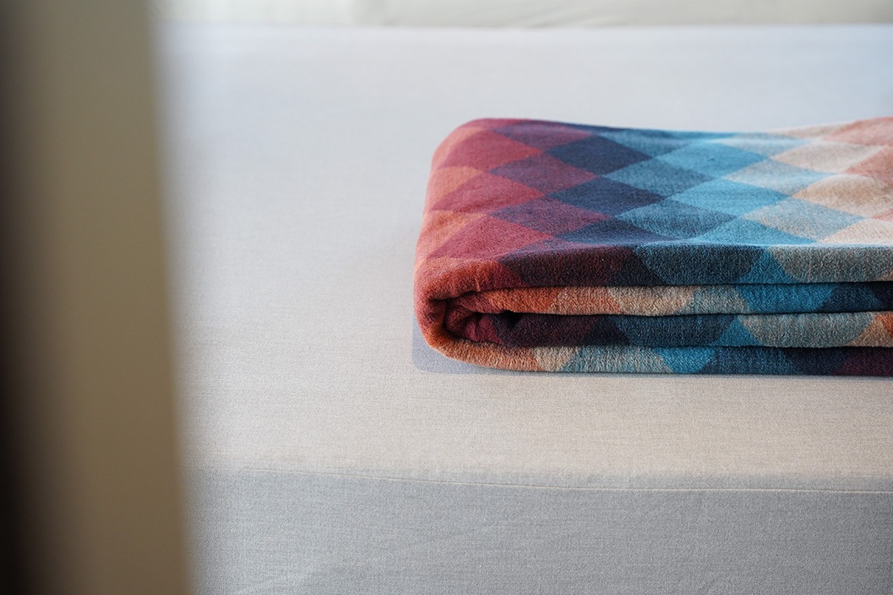 お布団の中に着ても良し、羽毛布団の上から重ねて使いながら保温性をプラスするとともにベッドスローとして活用するのもアリです。