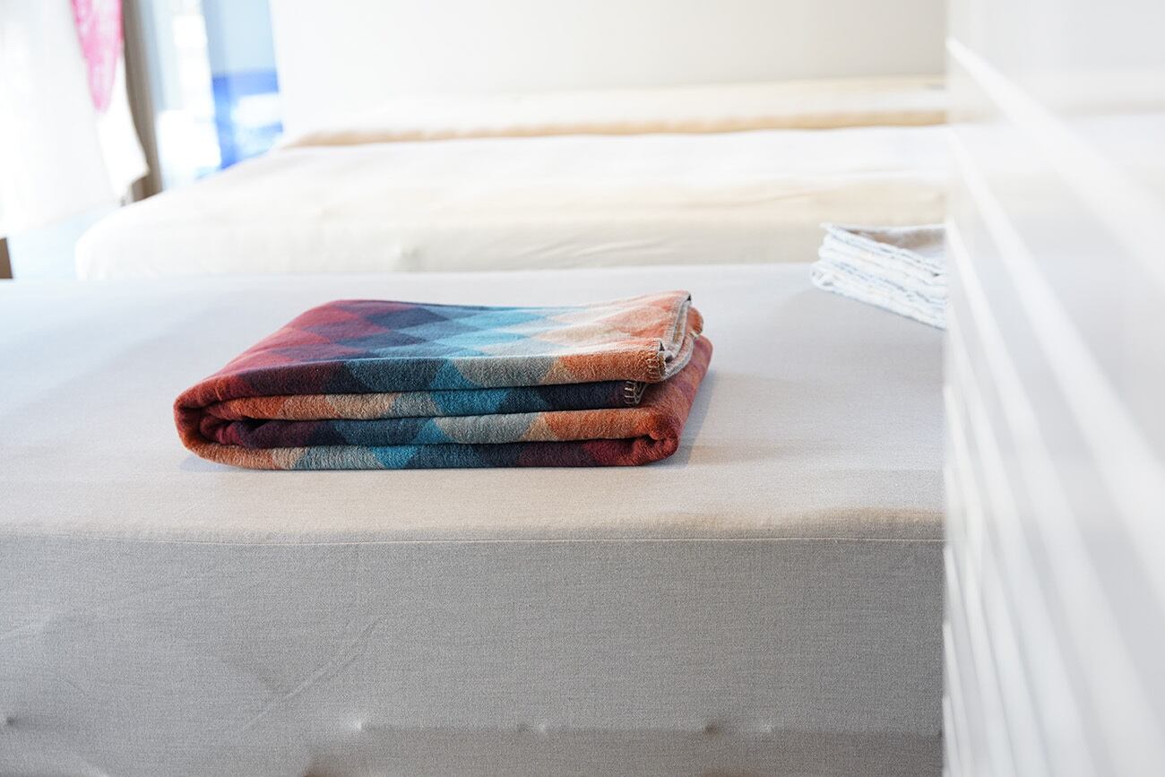 綿毛布とアクリル毛布のハイブリッドで、質感の柔らかさと体にフィットする着心地の良さの両方を楽しむことができます。